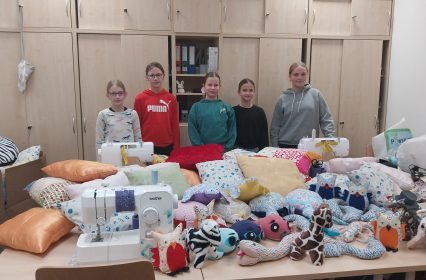 Mit viel Begeisterung und großem Engagement haben die Kinder unserer Schule in den Pausen, Freistunden, nach dem Unterricht und in der AG „Nähen“ zahlreiche Kissen und Kuscheltiere hergestellt. Die genähten […]