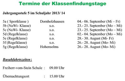 Hier finden sie die Termine für die diesjährigen Klassenfindungstage.