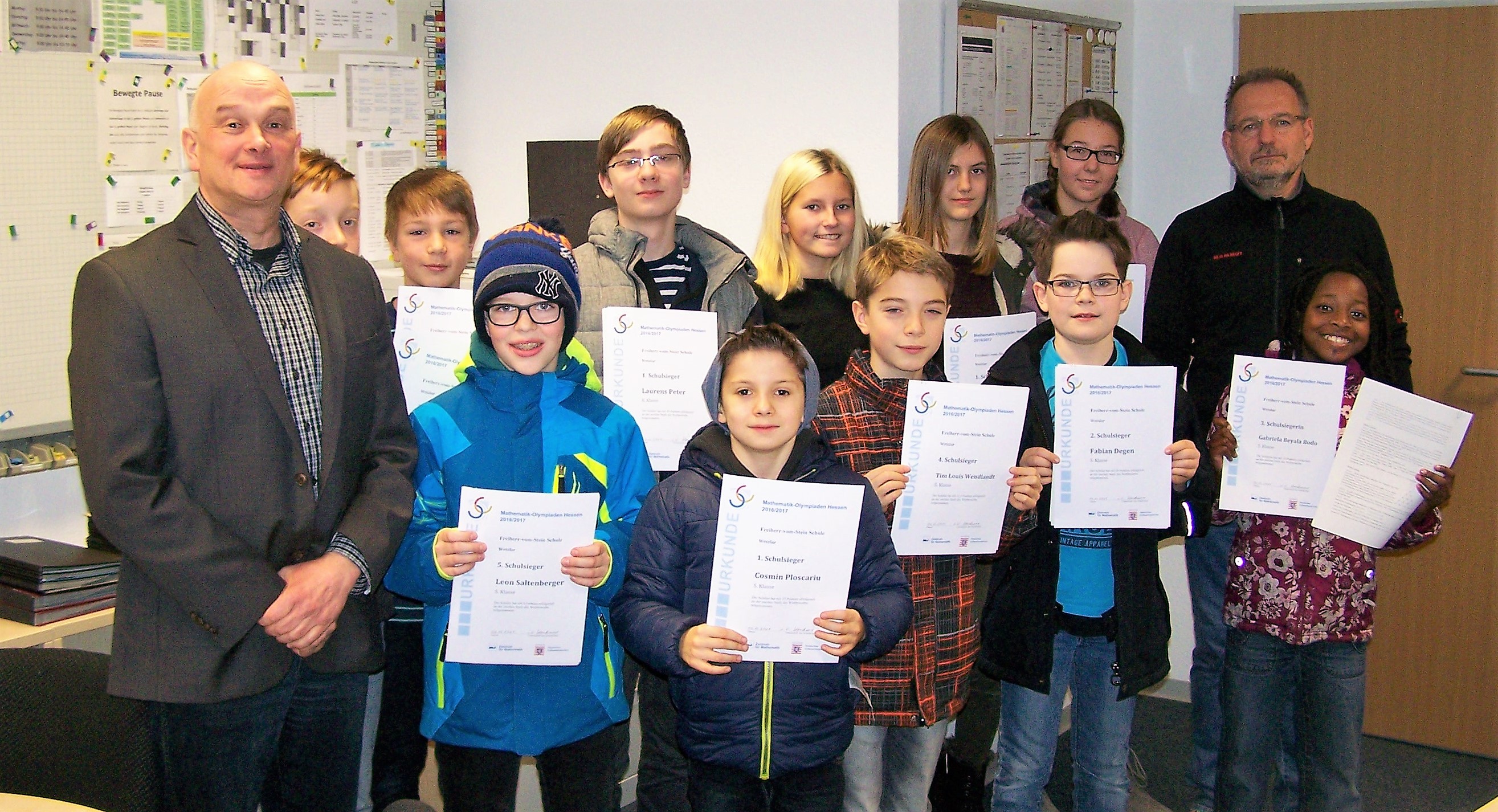 An der Freiherr-vom-Stein-Schule in Wetzlar wurden am Freitag den 09.12.2016 die Schülerinnen und Schüler gewürdigt, die sich besonders erfolgreich an der 2. Stufe der Mathematik-Olympiade Hessen 2016/2017 beteiligt haben.