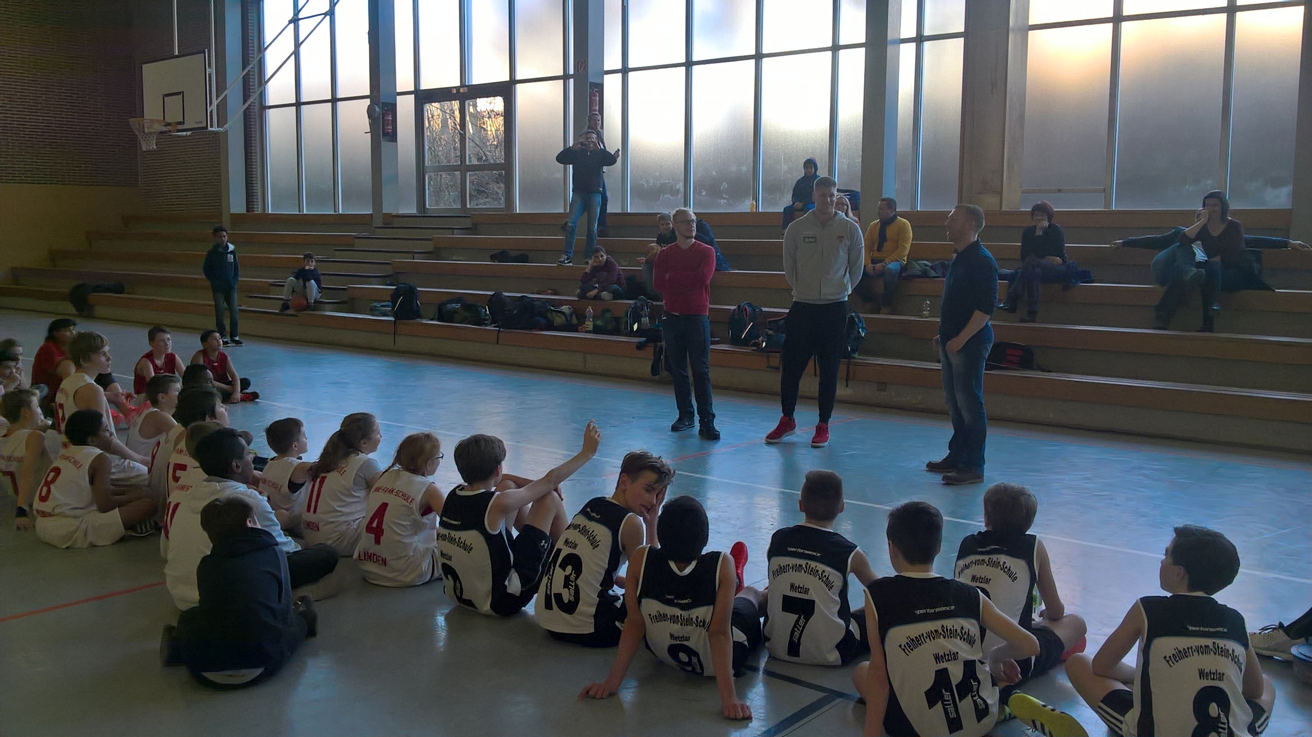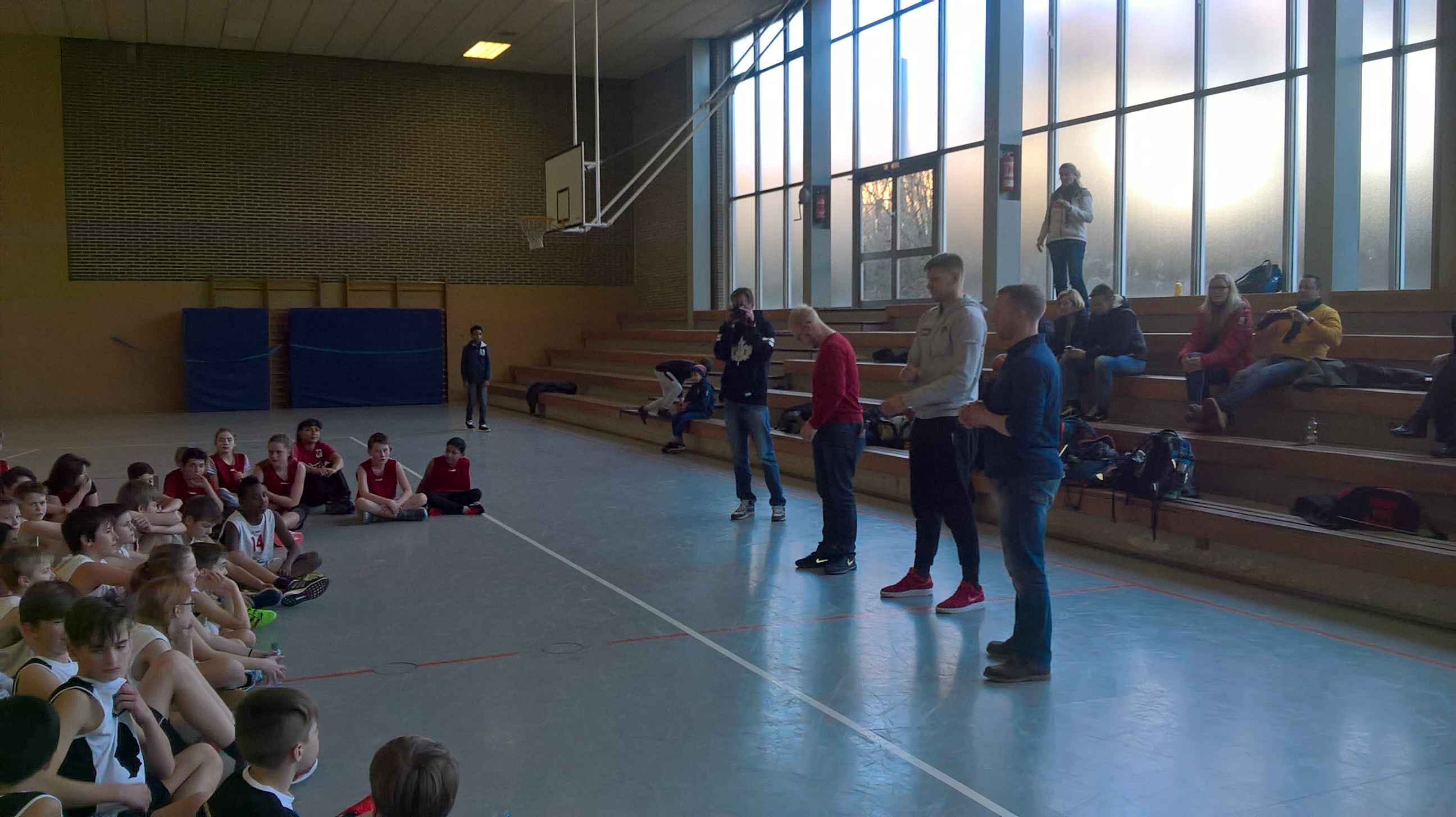 Am ersten Spieltag der Giessen 46ers Basketball-Schulliga spielte das Team der Steinschule an der Anne-Frank-Schule in Linden. Unser Team konnte sich in beiden Spielen durchsetzen und gewann gegen Linden 20:17 sowie gegen die Schule Gleiberger Land (Wettenberg) 27:17. Herzlichen Glückwunsch zu diesem Erfolg. Außerdem war Benjamin Lischka von den Giessen 46ers zu Gast an der Anne-Frank-Schule. Die Schüler konnten diese Gelegenheit nutzen, ihm einige Fragen zu stellen und ein paar Autogramme zu holen.