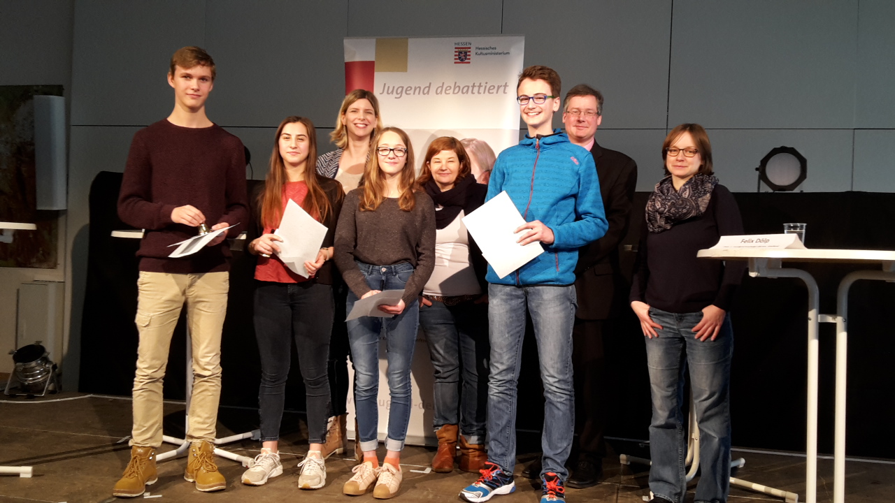 Unter der Leitung des Regionalkoordinators Mittelhessen, Andreas Schulz von der Goetheschule, der gleichzeitig das Projekt auch an der Freiherr-vom-Stein-Schule koordiniert, fanden zwei Debattenrunden zu aktuellen Fragen wie der nach einer verpflichtenden Kennzeichnung für Fleisch aus Massentierhaltung (Sekundarstufe 1) und der Einführung einer Mindestquote für Jugendliche in Stadt- und Gemeinderäten (Sekundarstufe 2) statt, die die diesjährigen Sieger des Regionalentscheids Mittelhessen hervorbrachten:
