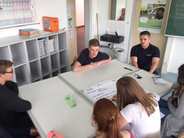 Auf der Kick-Off Veranstaltung haben die Schülerinnen und Schüler das Konzept des I am MINT – Projektes vorgestellt bekommen, dass das Arbeitsamt in Zusammenarbeit mit dem Arbeitskreis LAG SCHULEWIRTSCHAFT  organisiert. Die Schülerinnen und Schüler haben vier unterschiedlichen Gruppen einerseits Fragen formuliert, die Sie bei den Unternehmensbesuchen den Mentorenazubis stellen wollen, zum anderen hatten sie die Möglichkeit die anwesenden Azubis zu interviewen. So können wir ab Montag in unterschiedlich zusammengesetzten Gruppen die drei Kooperationsunternehmen besuchen.