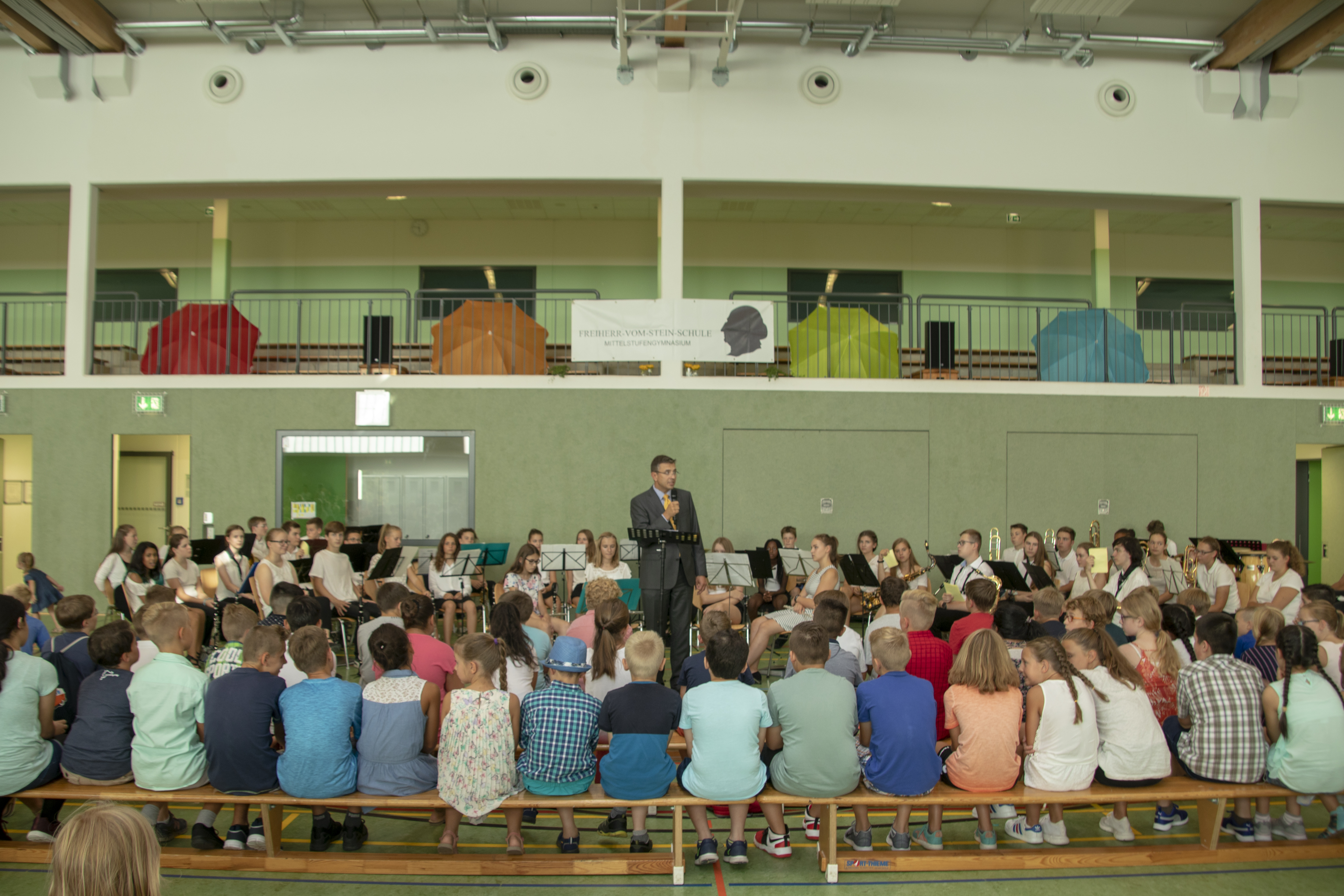 Am Montag, den 06.August 2018, war einiges los an der Steinschule: Die neuen Schülerinnen und Schüler der fünften Klasse hatten ihren ersten Tag an der Steinschule. Begleitet von ansprechender Musik durch unser Bläserensemble und einen kurzen Gruß der Schulleitung konnten die neuen Steinschüler eine erste Unterrichtsstunde mit ihren Klassenlehrern verbringen. Wir wünschen unseren neuen Schülerinnen und Schülern alles Gute und viel Erfolg auf ihrer neuen Schule !