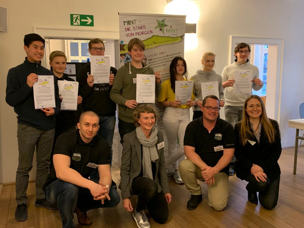 Eine Schülergruppe der Freiherr-vom-Stein-Schule hat im Zeitraum von Februar bis zu den Osterferien an der Veranstaltung „MINT die Stars von Morgen“ in Kooperation mit dem Viseum, dem Sciencecenter Wetzlar, teilgenommen. Über sieben Wochen haben sie sich in 28 Stunden näher mit dem Themenkreis MINT (Mathematik, Informatik, Naturwissnschaft und Technik) beschäftigt und dabei verschiedene Aufgaben bewältigt und an Aktivitäten teilgenommen: So wurde eine Maschine entwickelt, die eine Kreisbewegung in eine vertikale Bewegung umwandelt, mit Scratch das erste eigene Spiel programmiert und andere Experimente im Chemikum Marburg durchgeführt. Außerdem haben wir gemeinsam eine Messe zur Berufsorientierung besucht und an einer Betriebsbesichtigung in einem Unternehmen in Wetzlar teilgenommen.