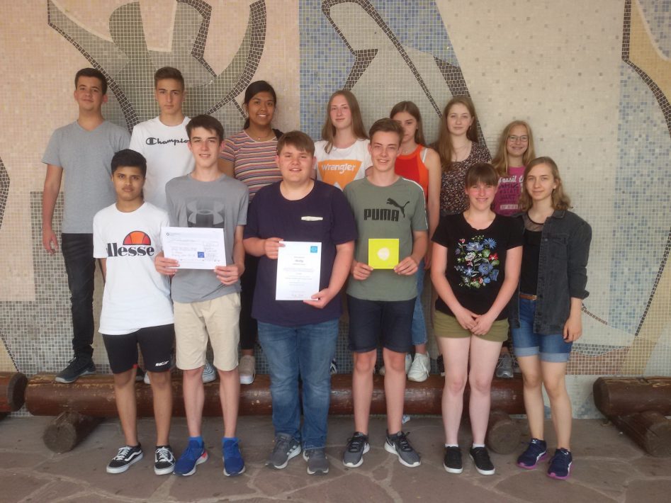 Mit Stolz und Freude nahmen jeweils drei Schülerinnen und Schüler aus den beiden Religionskursen die Urkunden und die Geldpreise (je 250,- Euro) entgegen.