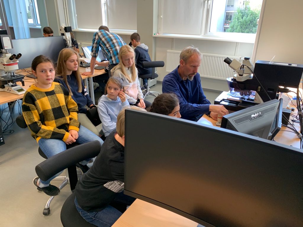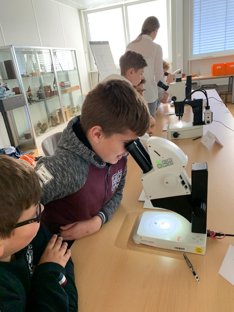 Die Klasse 6b der Steinschule durfte am vergangenen Mittwoch staunen, als sich im Mikroskopierworkshop bei der Firma Leica für sie ein ganz besonderer Einblick ergeben hat. Angeleitet durch die Profis von Leica konnten die Schüler unterschiedliche Entdeckungen im Mikrokosmos machen: Eine Namensgravur auf einem Reiskorn mit einem speziellen Mikroskop, das Laserausschnitte aus Geweben tätigen kann, die Untersuchung von Lahnwasser mit Aufsichtmikroskopen, Fluoreszenzmikroskopie oder spezielle Stereolupen, die Insekten wie aus Fantasy-Gruselfilmen erscheinen ließen – all das konnten die Schülerinnen und Schüler bewundern. Wir danken der Firma Leica herzlich, die nun schon zum neunten Mal ihre Pforten für unseren Mikroskopierworkshop geöffnet hat.