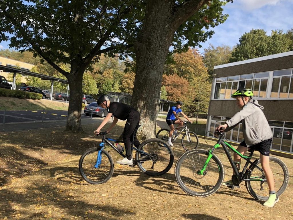 Für die beiden Triathlon AG Leiter Jasmin Hartmann und Christoph Schmidt ist es besonders wichtig, dass ihre Teilnehmer nicht nur schnell auf ihrem Fahrrad unterwegs sein können, sondern auch, dass eine ausreichend Radbeherrschung vorhanden ist. Hierzu wurde auf dem Schulgelände ein abwechslungsreiches Techniktraining absolviert, bei dem alle Teilnehmer entsprechend ihrer Voraussetzungen deutliche Entwicklungen auf ihrem Rad gezeigt haben. Zum Abschluss ging es mit der Lerngruppe noch auf eine kleine Tour, bei der sich jeder nochmal richtig auspowern konnte.