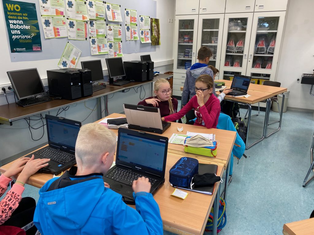 Die AG Coding und Robotik ist durch die Toughbook-Spende der Telekom möglich geworden. In der AG können 18 Schülerinnen und Schüler erste Schritte der Programmierung erlernen. Der Einstieg in die Programmierung erfolgte über die in Unternehmen praktizierte Methode mit dem Kanban Board. So erlernen die Schüler die Arbeit im Team und die Dokumentation ihres Vorgehens beim Programmieren.