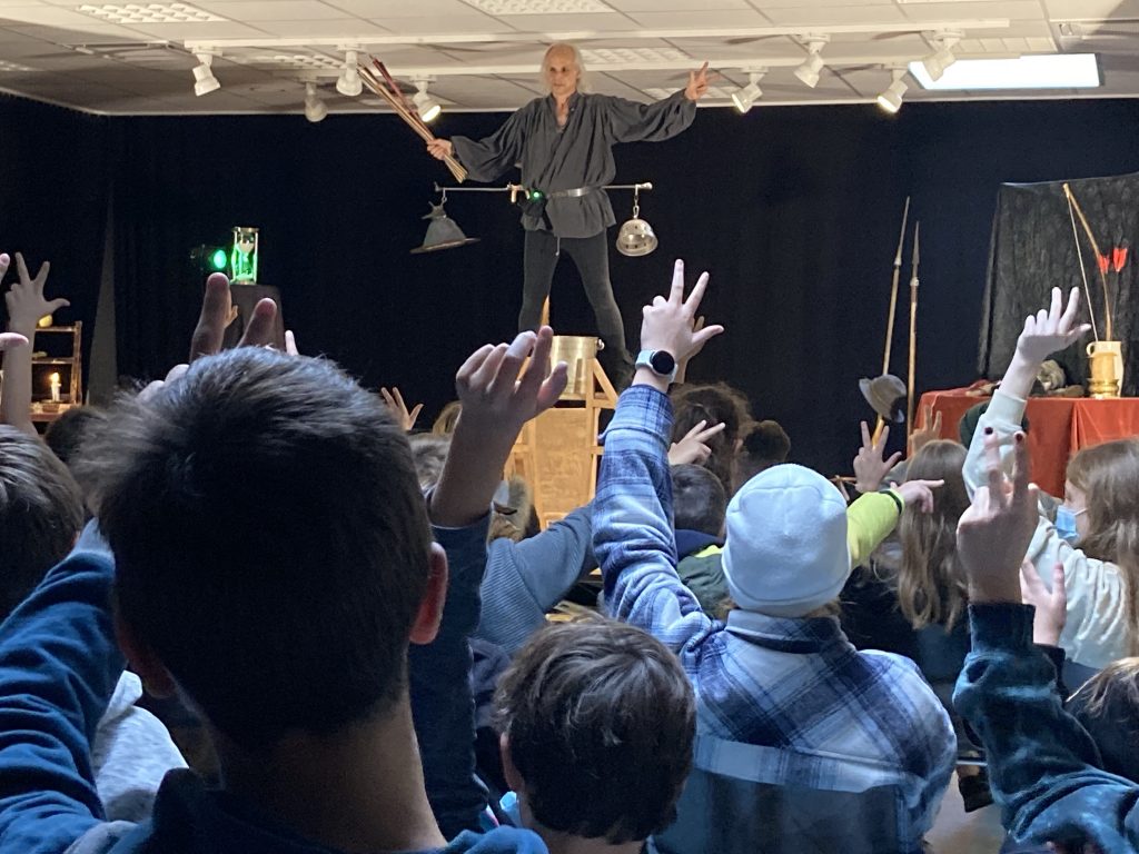Auch die von Herrn Voigt sehr schülernah gestaltete Frage- und Reflexionsrunde, die sich an die Aufführung anschloss, stieß auf rege Beteiligung bei seinem jungen Publikum.