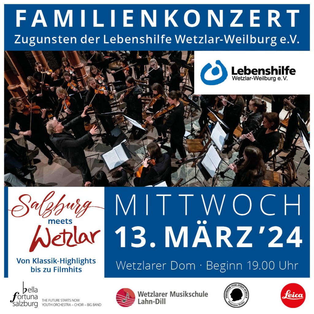 Wir freuen uns, Sie am Mittwoch, den 13.03.2024 um 19:00 Uhr zu einem Konzert im Wetzlarer Dom einladen zu dürfen. Gemeinsam mit dem Orchester Bella Fortuna Salzburg sowie dem Lahn-Dill-Jugendorchester und dem Leica-Chor werden etwa 120 Musikerinnen und Musiker ihr Talent zum Besten geben und sich so für die Lebenshilfe im Rahmen dieses Benefizkonzertes einsetzen. Neben klassischen Violinstücken bietet dieses Konzert auch moderne Filmmusik, so dass wir uns insgesamt auf ein mitreißendes und buntes Programm freuen dürfen. Tickets können unter anderem hier oder hier bestellt werden.