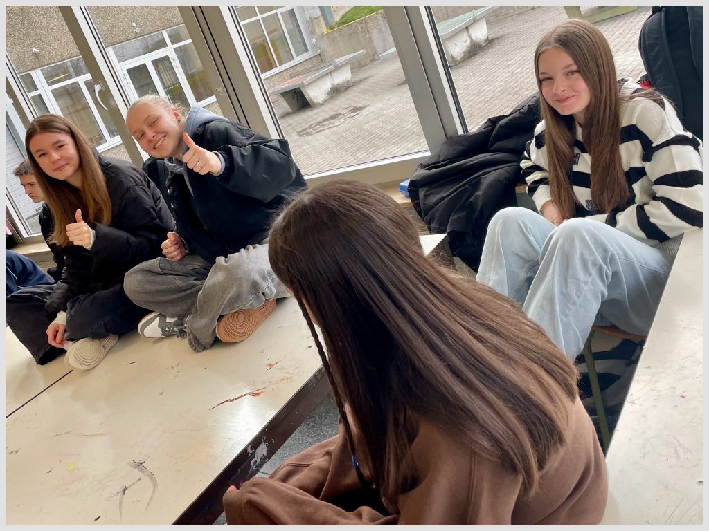 Nach der Aufführung hatten die Schülerinnen und Schüler der 9a die Möglichkeit, in einer Nachbereitung noch tiefer in das Gesehene und Erlebte mit der Theaterpädagogin Denitsa Stoyanova einzutauchen. Die Nachbereitung begann mit körperlichen Lockerungsübungen, um den Geist für die nachfolgende Reflexion vorzubereiten. In der daraufhin folgenden inhaltlichen Auseinandersetzung wurde das Stück aus verschiedenen Perspektiven beleuchtet, was den Schülern half, ein tieferes Verständnis für die behandelten Themen zu entwickeln.