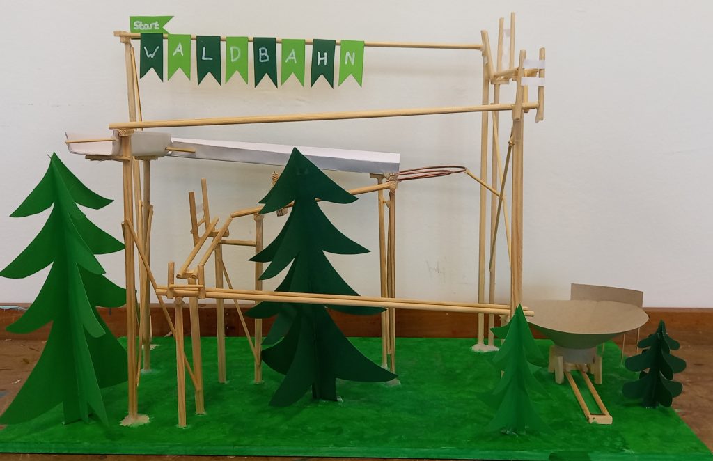Die Schülerinnen und Schüler der 7. Jahrgangsstufe zeichneten zunächst Entwürfe für Achterbahnen, die zuvor gesammelte Kriterien guter Achterbahnen vereinen sollten. Ausgehend von diesen Zeichnungen wurden erste Stützkonstruktionen entworfen, probehalber gebaut und davon ausgehend zunehmend verbessert. Über Learning by doing erarbeiteten sich die Lernenden physikalische Prinzipien, beispielsweise wie die Beschleunigung die Geschwindigkeit der Achterbahn beeinflusst, wie die Fliehkraft eine Murmel in den Kurven nach außen drückt und wie die Gravitation die Achterbahn wieder nach unten zieht.