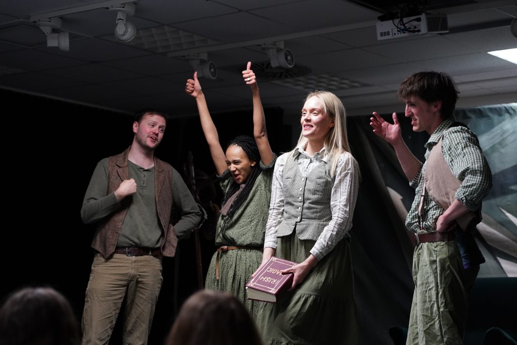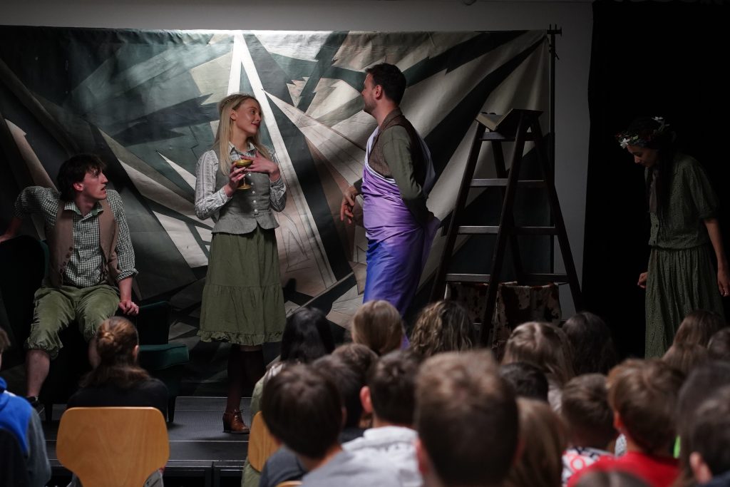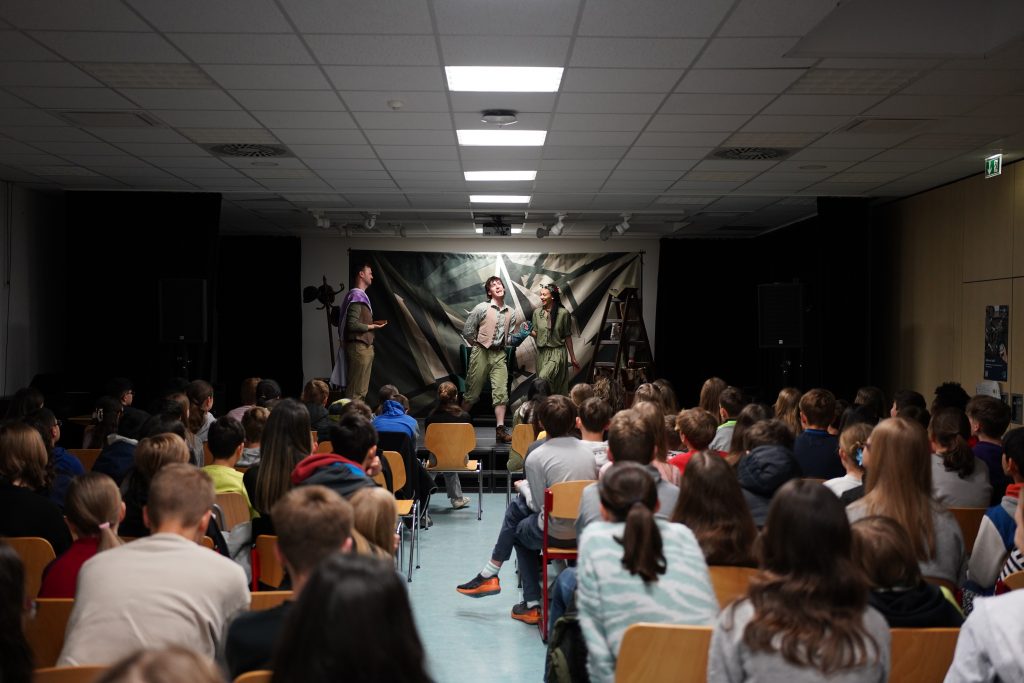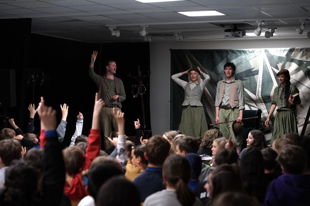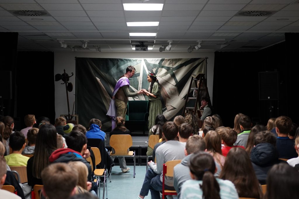 Am 22. April besuchten die Klassen des Jahrgangs 6 im Mehrzweckraum die Vorstellung des „White Horse Theatre“. Die englischsprachige Theatertruppe kommt regelmäßig an die Freiherr-vom-Stein Schule und führte diesmal das Stück „Irish Magic“ auf. Die vier jungen Schauspielerinnen und Schauspieler erzählten drei irische Märchen, von denen die Klassen dann das ihrer Meinung nach beste auswählen durften. Allen Beteiligten hat die Aufführung, die 60 Minuten dauerte, wirklich Spaß gemacht.
