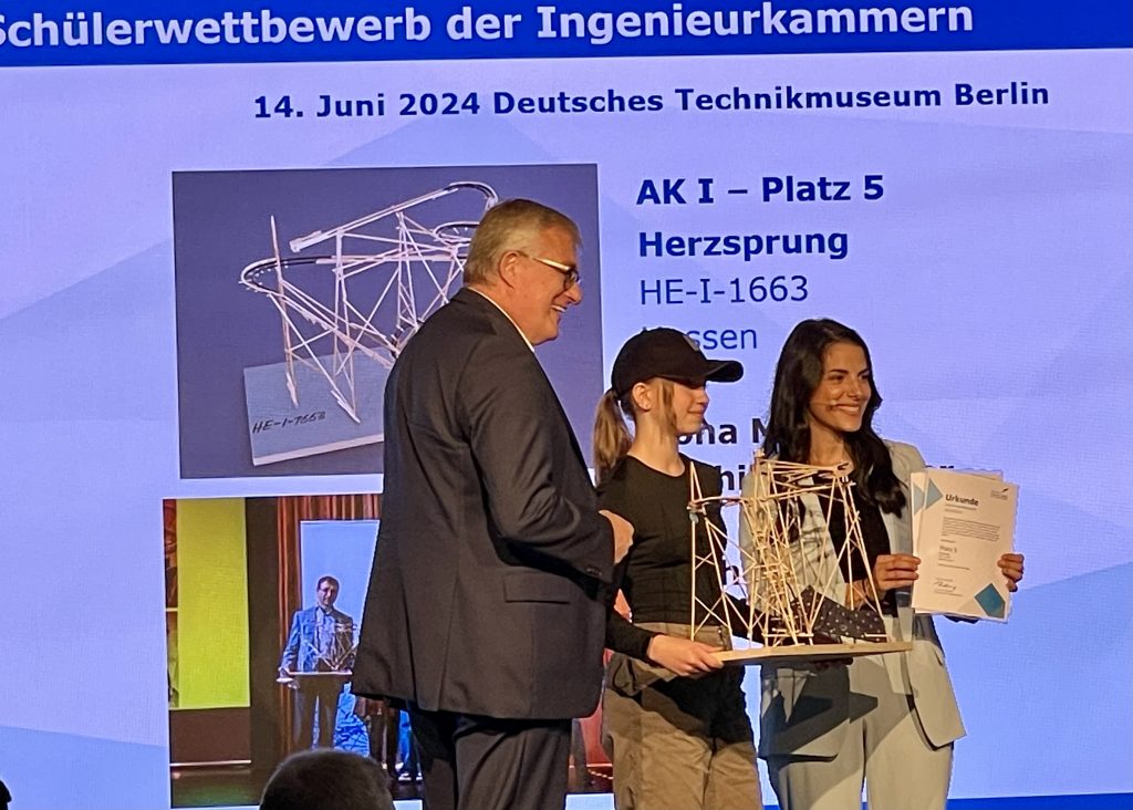 Am 14. Juni 2024 fand im Deutschen Technikmuseum in Berlin die Ehrung der besten Teams des bundesweiten Schülerwettbewerbs Junior.ING statt. Die Aufgabe für die Schülerinnen und Schüler bestand darin, eine funktionstüchtige Achterbahn zu planen und als Modell zu bauen. Insgesamt beteiligten sich 4.458 Schülerinnen und Schüler mit 1.757 Modellen an diesem anspruchsvollen Projekt. Auch die Steinschule war durch Oona Marek (7D) vertreten, die mit ihrer Achterbahn „Herzsprung“ einen herausragenden 5. Platz belegte. Oona hatte sich mit ihrem Modell bereits auf Hessenebene den ersten Platz gesichert und sich damit für den Bundeswettbewerb qualifiziert.