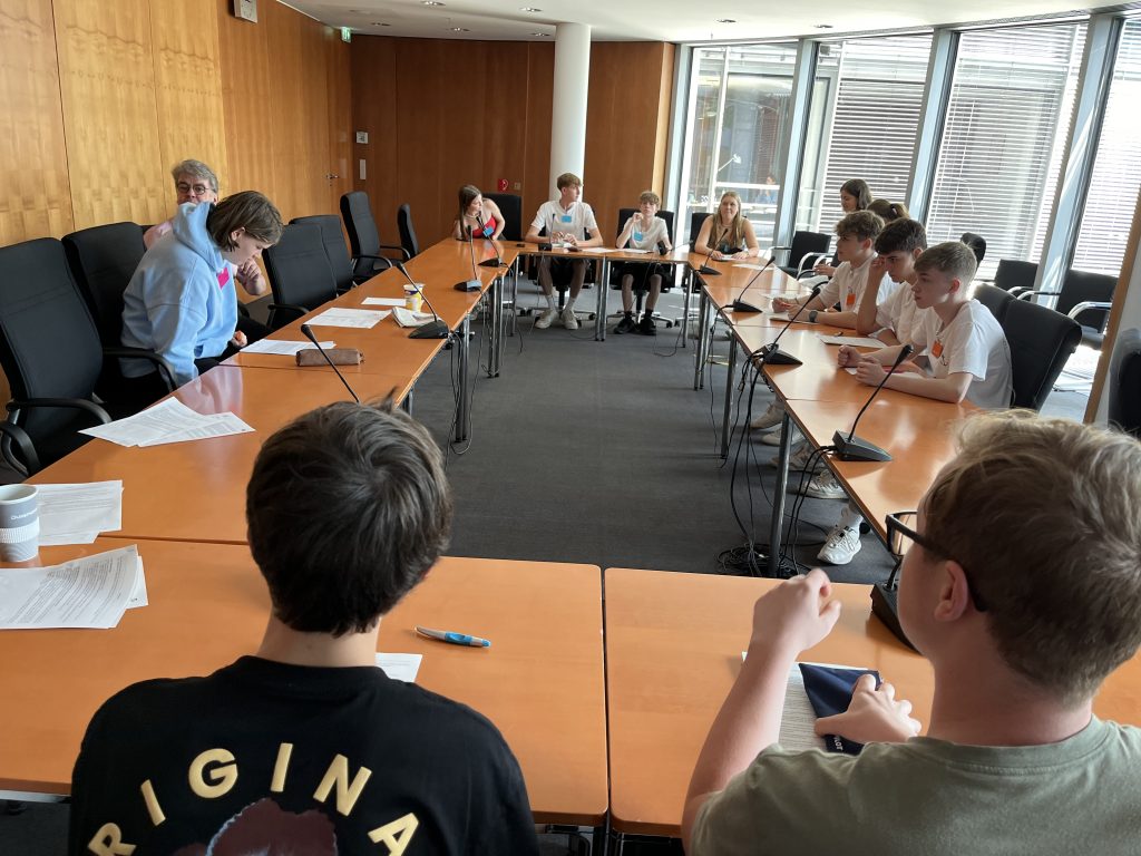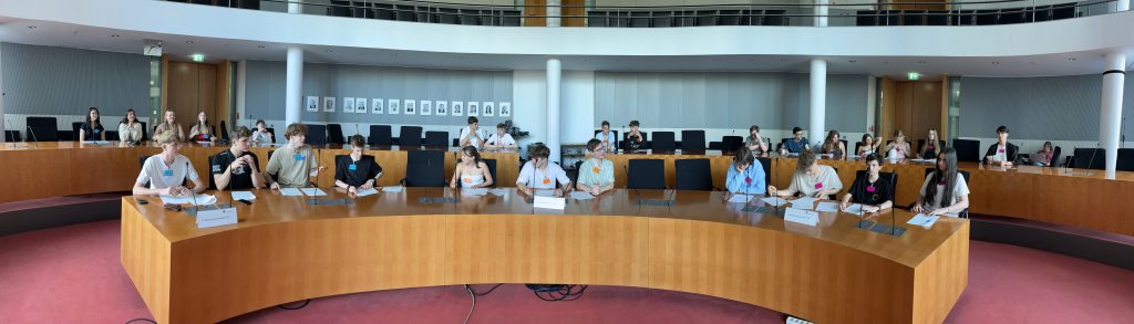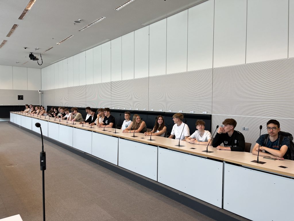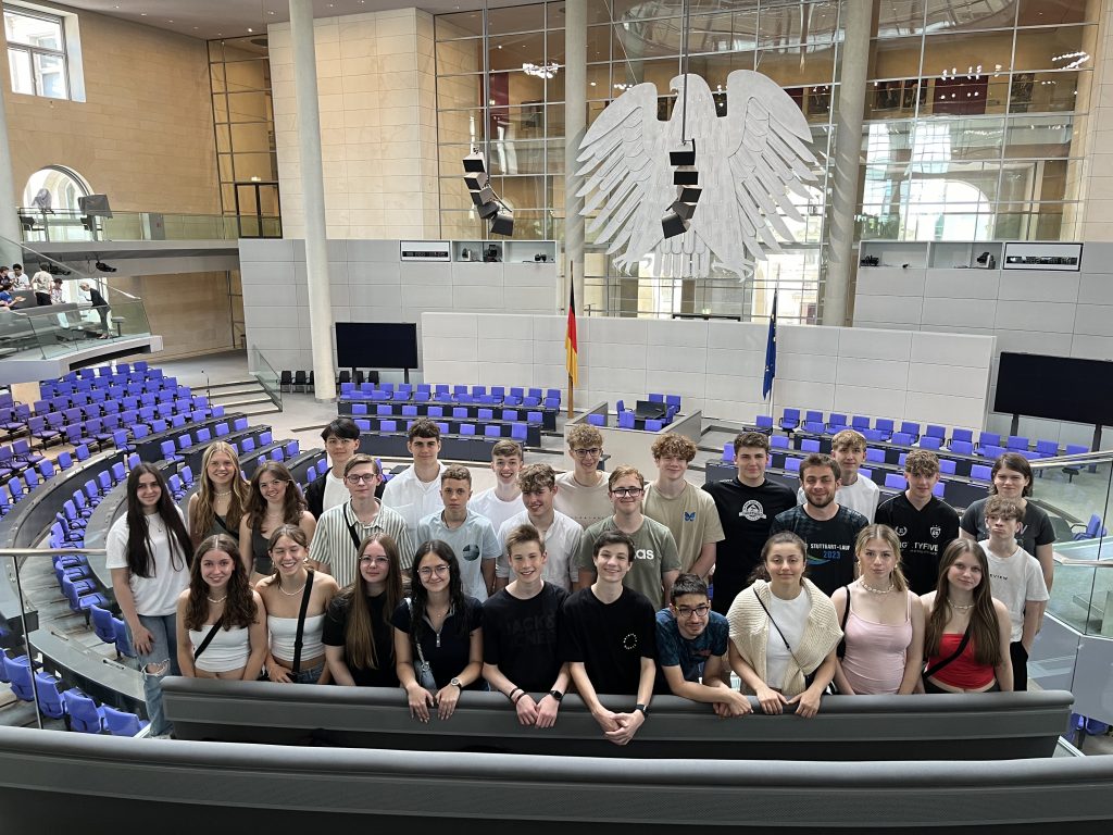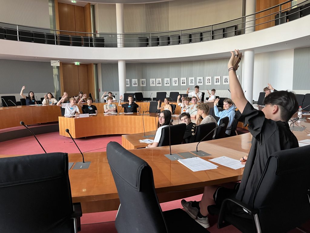 Im Rahmen ihrer Abschlussfahrt nach Berlin hat die Klasse 10c unserer Schule eine besondere Erfahrung im deutschen Bundestag gemacht. Die Schüler nahmen an einem Planspiel teil, das nach einer eindrucksvollen Führung durch das Reichstagsgebäude im Paul-Löbe-Haus stattfand. Als Teil des Programms wurden die Schüler vom Bundestag auch zu einem Mittagessen eingeladen.