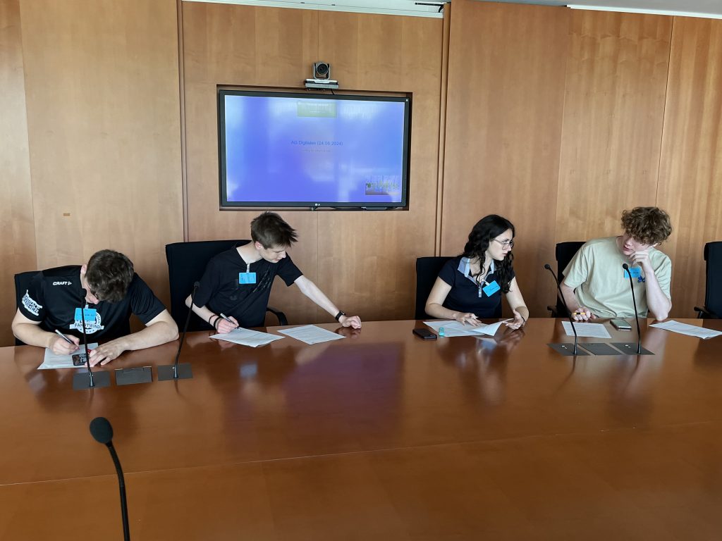 Passend zum Thema „Generelles Alkoholverbot für Jugendliche“ diskutierten die jungen Abgeordneten in den Ausschüssen „Jugend“ und „Wirtschaft“. Der Ausschuss „Jugend“ hatte hierbei die federführende Rolle. Die Schüler erlebten den gesamten Prozess von der Diskussion in den Ausschüssen bis hin zur Abstimmung im Plenum.
