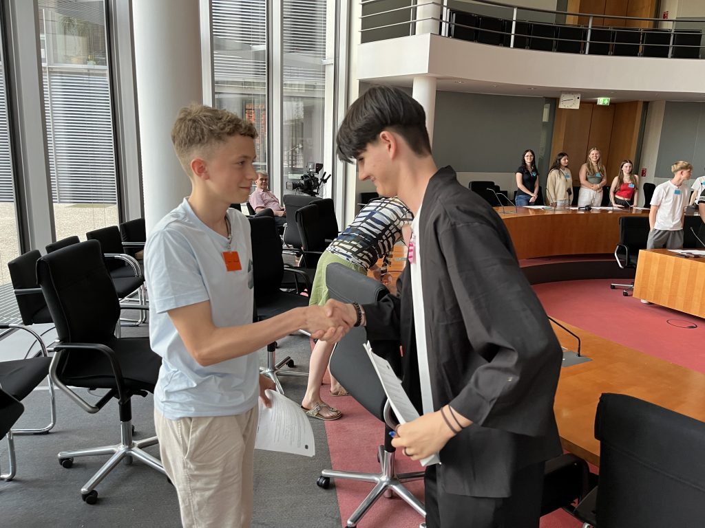 Ein besonderes Highlight war die Wahl eines eigenen Bundestagspräsidenten sowie der Fraktions- und Ausschussvorsitzenden. Diese Verantwortungen wurden von den Schülern mit großem Engagement übernommen und trugen zur realistischen Atmosphäre des Planspiels bei.