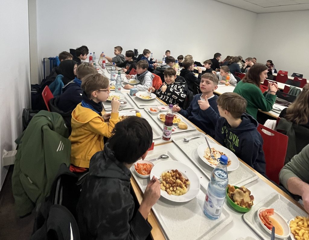 Am 07.02.25 machten sich wieder 30 Steinschüler mit ihren Lehrkräften Herr Dinkel und Herr Kager auf den Weg in die Sporthalle Ost nach Gießen, um beim Opening Day der Gießen 46ers Basketball Schulliga ihr Können im Wettbewerb mit anderen Schulen zu präsentieren.