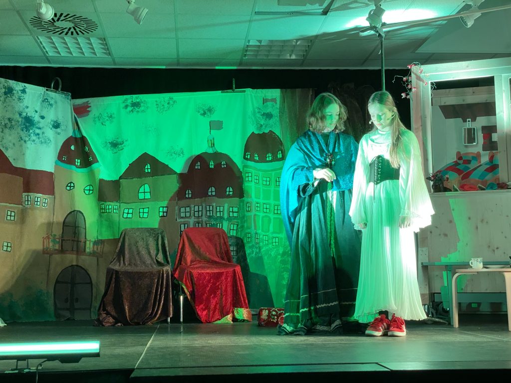 Das Technikteam unter der Leitung von Hugo Geil kümmerte sich mit großem Engagement um die Ton- und Lichttechnik und sorgte dabei für sehr stimmungsvolle Momente, wenn z.B. der Jäger (Martin First/Amelia Gebhard) und Schneewittchen ihr Abschiedsduett singen, oder wenn Schneewittchen, verlassen im Wald, ihr anrührendes Lied singt. Ebenfalls effektvoll gelang der Auftritt der Königin, als sie ihre großes Solo singt, das an Mozarts Königin der Nacht erinnert.