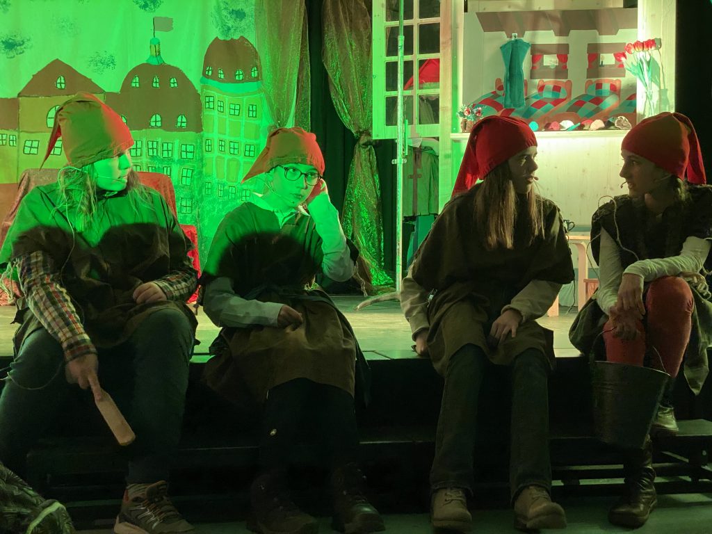 Den Darstellern der Zwerge, die in diesem Musical von der Königin verbannte ehemalige Hofangestellte sind, merkte man ihre große Spielfreude an, egal ob es die Besetzung des Dienstags war (Amelija Aleksejeva, Lusia Aratunjan, Tim Dzewas, Malena Röber, Emma Albrecht, Maya Bongartz, Nikola Müller-Brodmann), oder die am Mittwoch (Amelija Aleksejeva, Milina Hein, Jonas Voß, Tori Thierfelder, Nerea Freund, Frida Ranft, Nikola Müller-Brodmann).