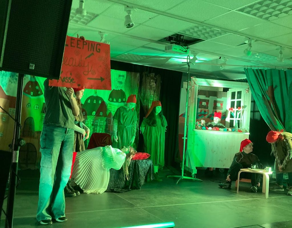 Unser Musical nahm aber eine andere Wendung: Schneewittchen (Julia Lodde/Liana Schneider/Jana Luzi) stellt sich nur tot, um den Spion „Spiegel“ (Mara Weber/Malena Röber) zu täuschen und so vor den Intrigen der Königin sicher zu sein. Derweil verdienen die sieben Zwerge nicht schlecht an Schneewittchen, aus dem sie eine lukrative Touristenattraktion gemacht haben: Die „Sleeping Beauty“ . Gegen die Raffinesse der Zwerge kommt selbst die heimtückische Königin (Mara Kleineidam/Helena Tuchscherer) nicht an und gibt sich am Ende geschlagen.