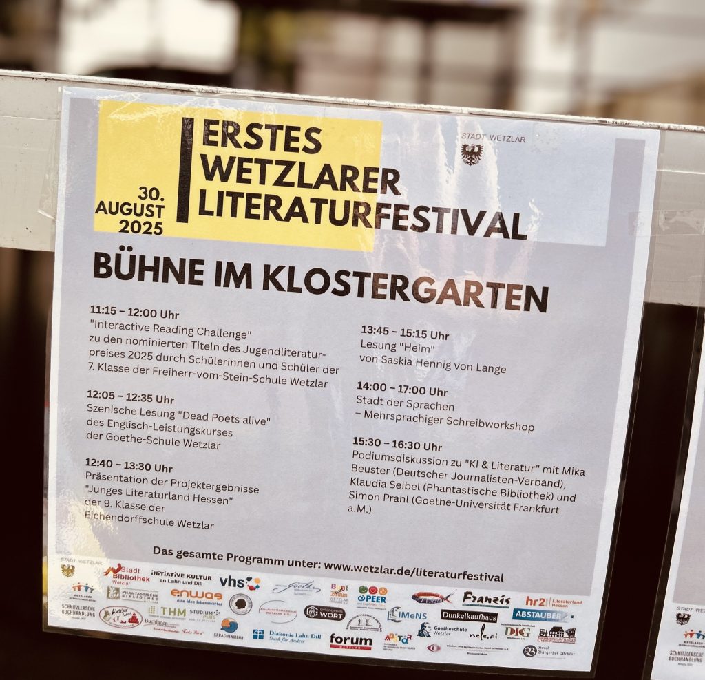 Am Samstag, den 30. August 2025 feierte die Stadt Wetzlar ihr erstes Literaturfestival – mit einem bunten Programm rund um Bücher auf verschiedenen Bühnen und in zahlreichen Locations in der ganzen Stadt.