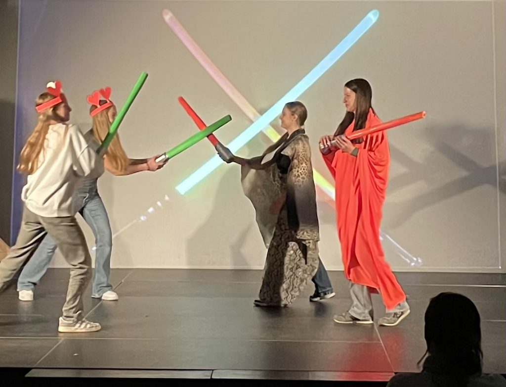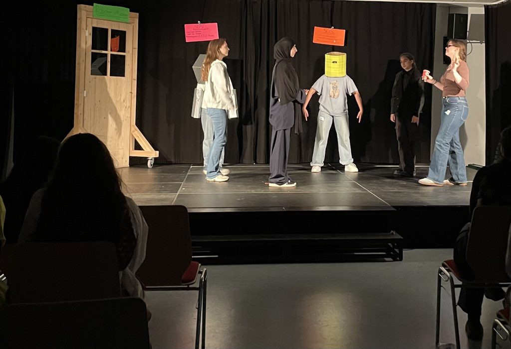 Den Höhepunkt des dreitätigen Workshops bildete der Abschlusstag am 17. September: Vor einer fünften Klasse führten die Schülerinnen und Schüler ihre Ergebnisse auf anschauliche Weise vor. Mit viel Engagement und unterschiedlichsten Talenten gelang es ihnen, komplexe Inhalte altersgerecht aufzubereiten und den Jüngeren einen lebendigen Zugang zu den Themen und den Genres Schauspiel, Tanz und Performance zu ermöglichen. Dabei zeigte sich nicht nur das große Interesse der Fünftklässler, sondern auch das Verantwortungsbewusstsein der Neuner, die quasi in ihre Rolle als „Lehrende“ hineinwuchsen.