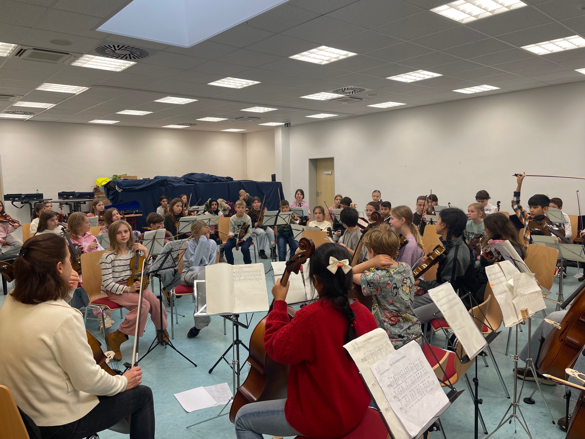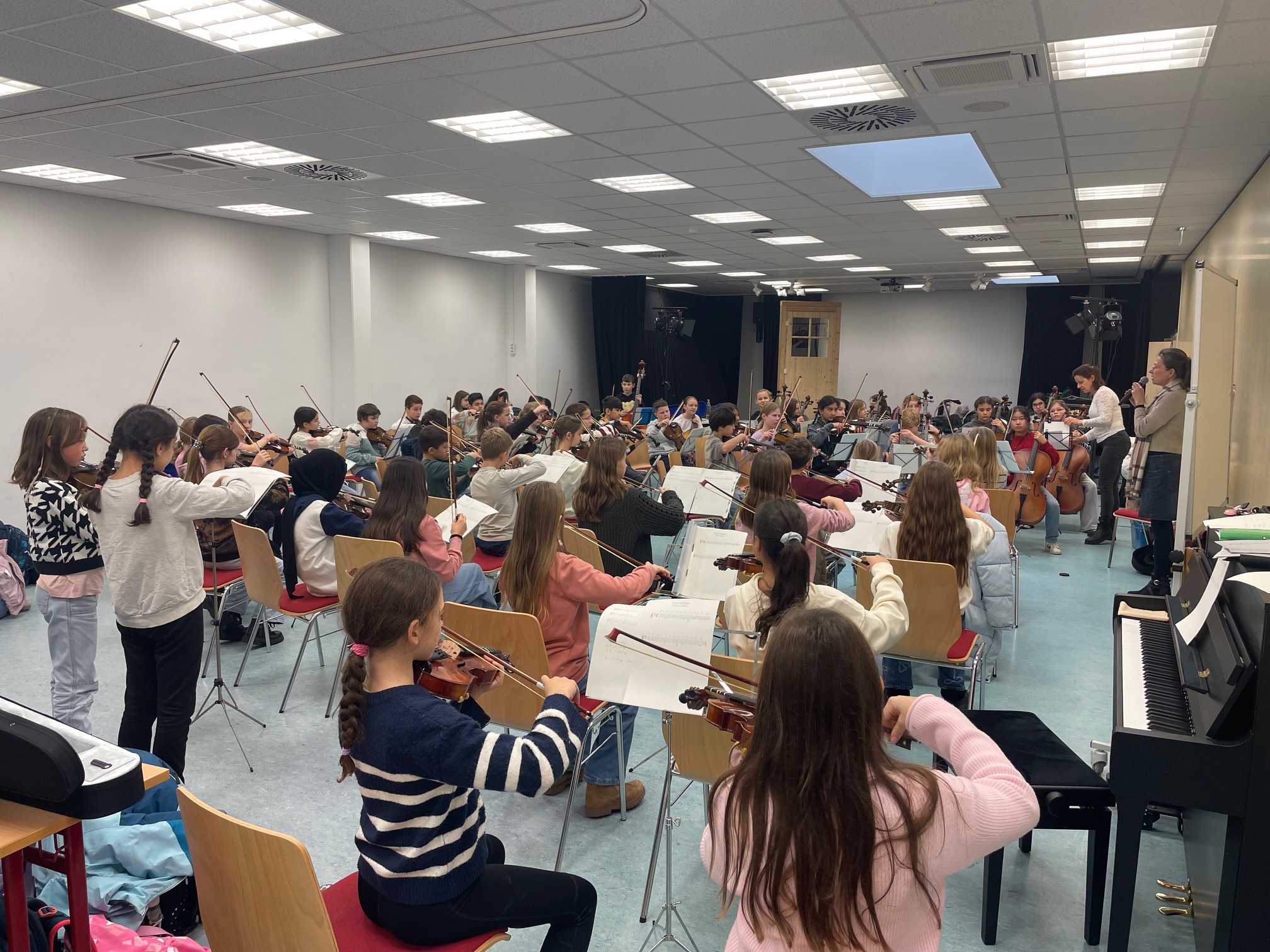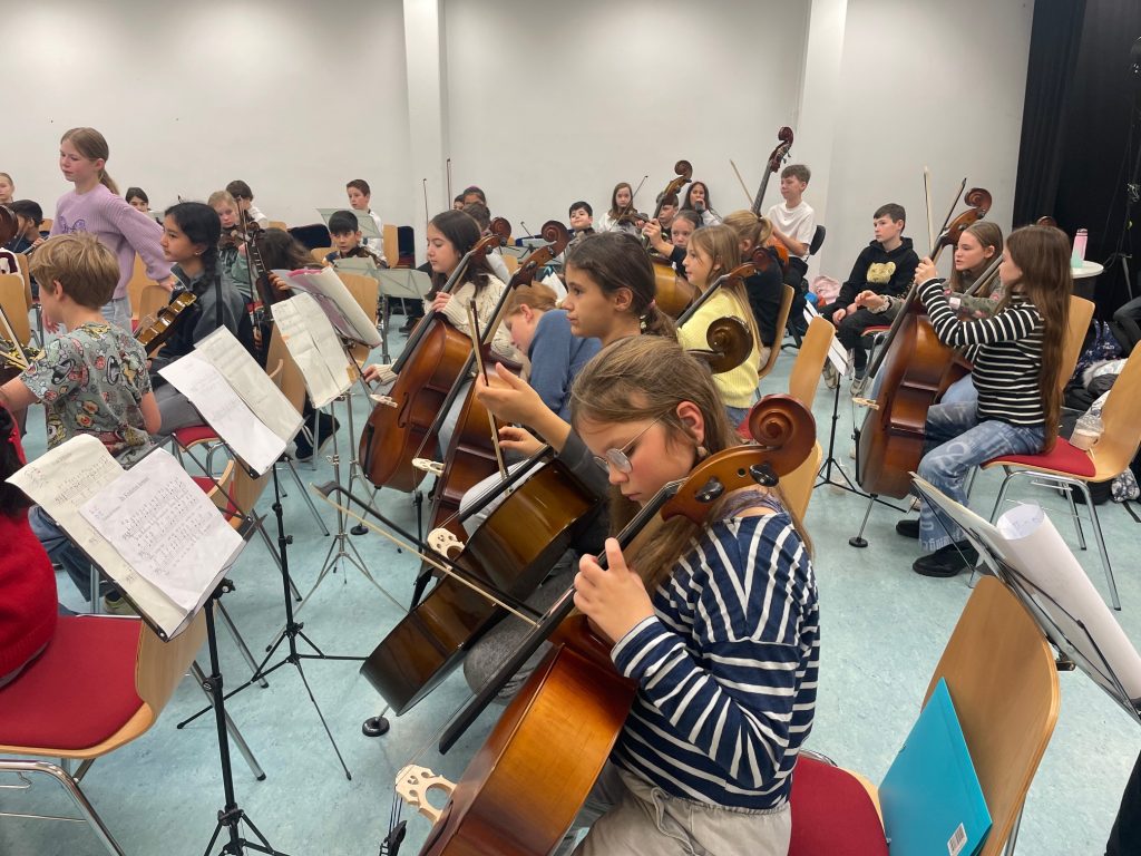 Für erste Konzerte proben im Moment fast 70 Schülerinnen und Schüler des Jahrgangs 5, die sich im September in das Streicherprojekt mit den Instrumenten Violine, Viola, Violoncello und Kontrabass eingewählt haben. Die Kinder sind mit sehr großer Spielfreude und enormem Lerninteresse bei der Sache, so dass sie bereits als eigenes Orchester ein kleines Weihnachtsprogramm einstudieren konnten, das am 6. Dezember am Tag der offenen Tür und am 18. Dezember im Dom innerhalb des Weihnachtsgottesdienstes aufgeführt werden wird.