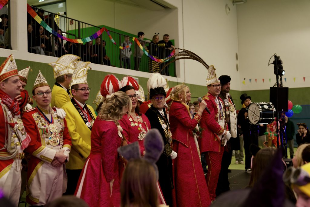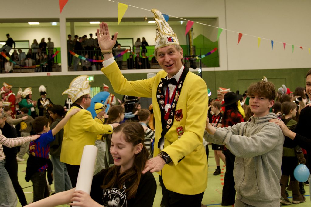 Am Freitag, den 13.02., wurde an unserer Schule Fasching gefeiert – mit viel guter Laune, kreativen Kostümen und echter Feierstimmung. Ein besonderer Höhepunkt war der Besuch des Wetzlarer Prinzenpaares: Prinz Sebastian I. und Prinzessin Jasmin I. waren in der zweiten Unterrichtsstunde bei uns zu Gast und feierten gemeinsam mit allen Schülerinnen und Schülern in der Sporthalle.