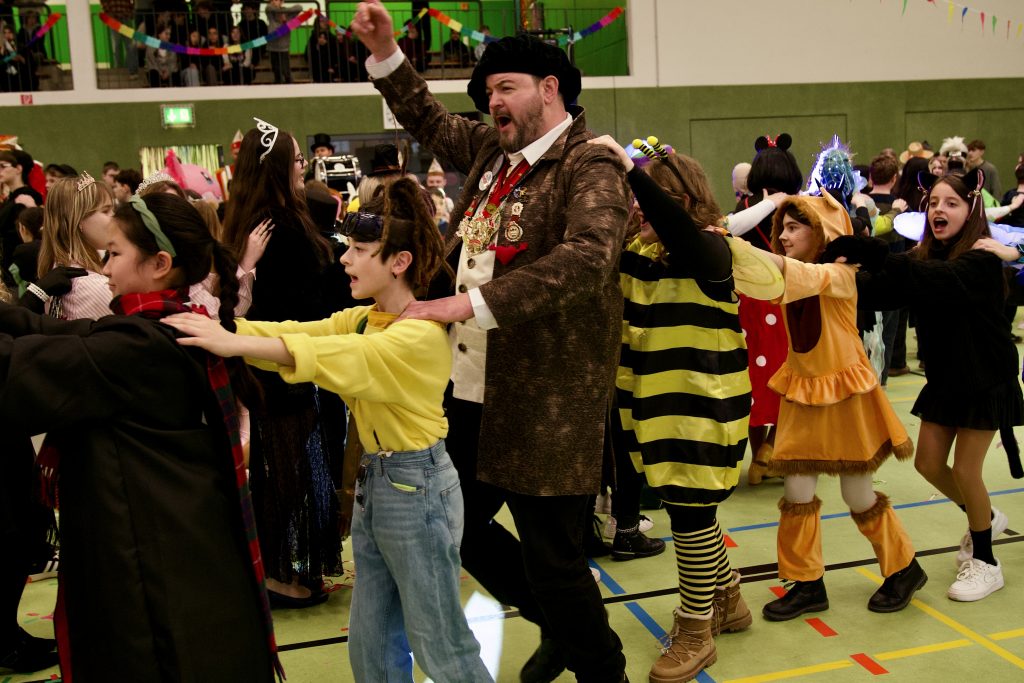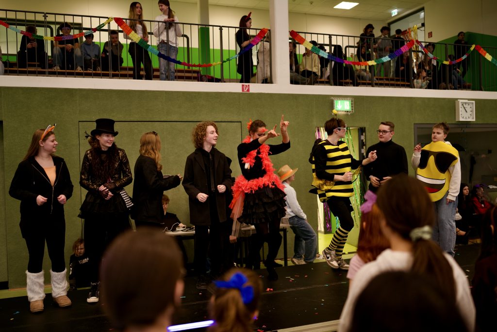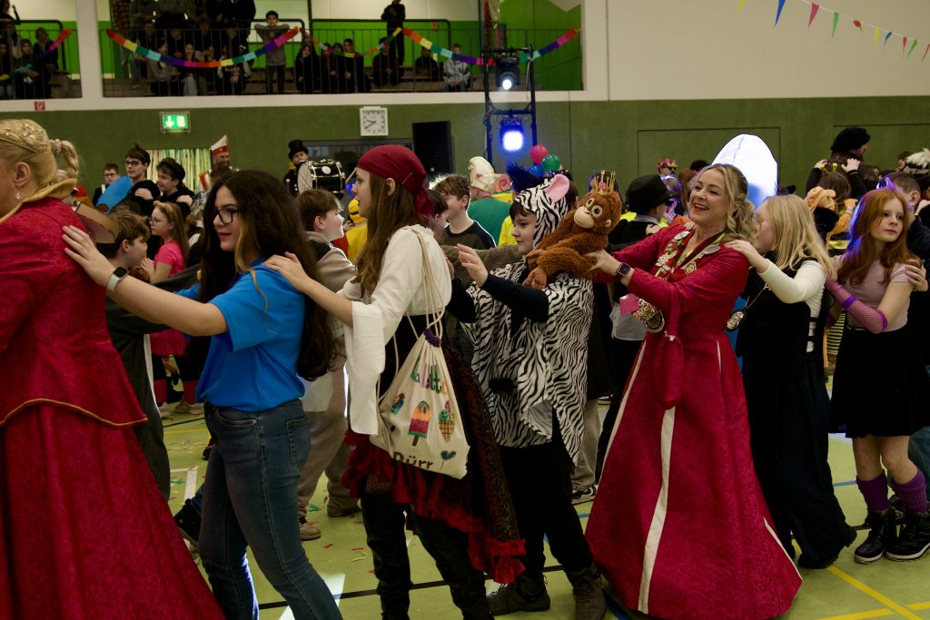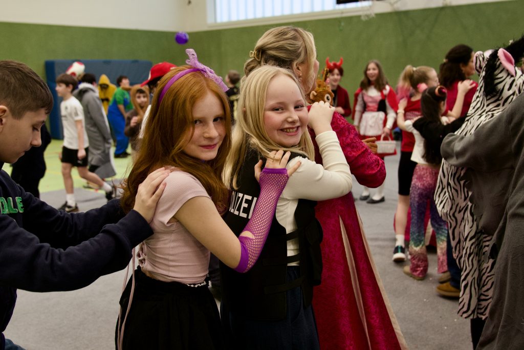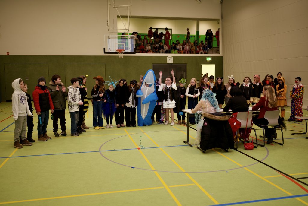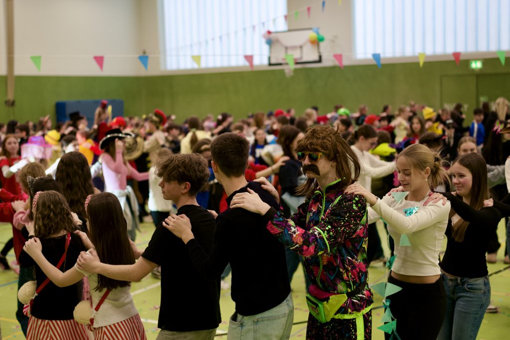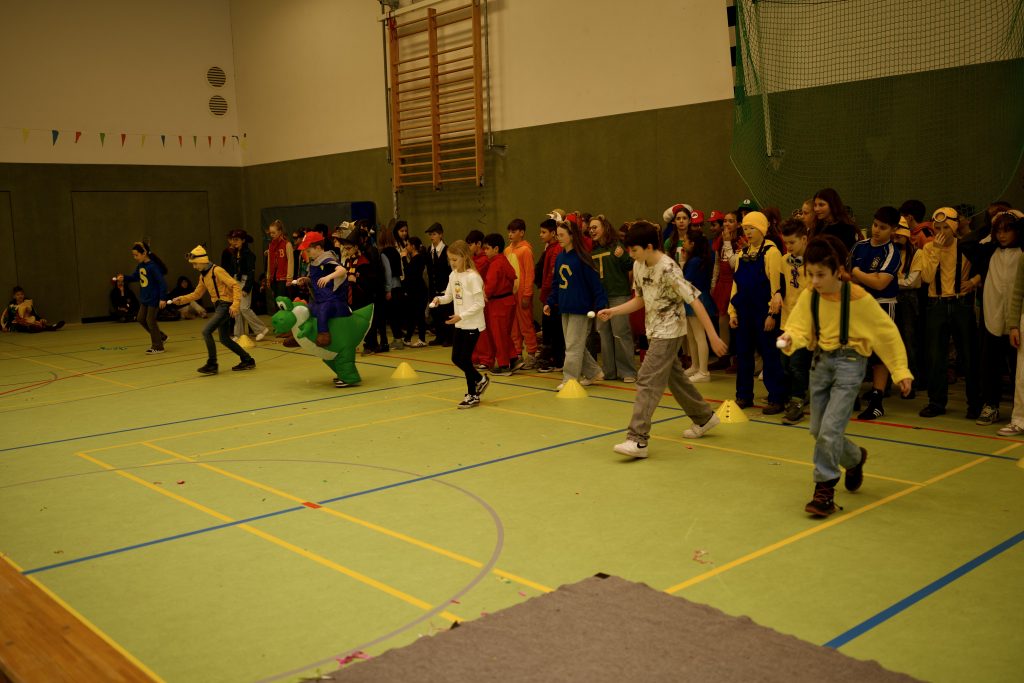 Für das leibliche Wohl sorgte die SV mit einem Kuchenverkauf für die Schülerschaft. Außerdem gab es einen Kostümwettbewerb der 5. und 6. Klassen – Sieger wurde die Klasse 5d von Frau Prekas. Auch die Lehrkräfte veranstalteten einen eigenen Kostümwettbewerb und brachten die Kinder damit zum Lachen. Mit Spielen wie Eierlaufen, viel Musik und Tanzen war den ganzen Tag über beste Stimmung spürbar. Insgesamt war die Faschingsfeier ein voller Erfolg und hat allen viel Spaß gemacht.