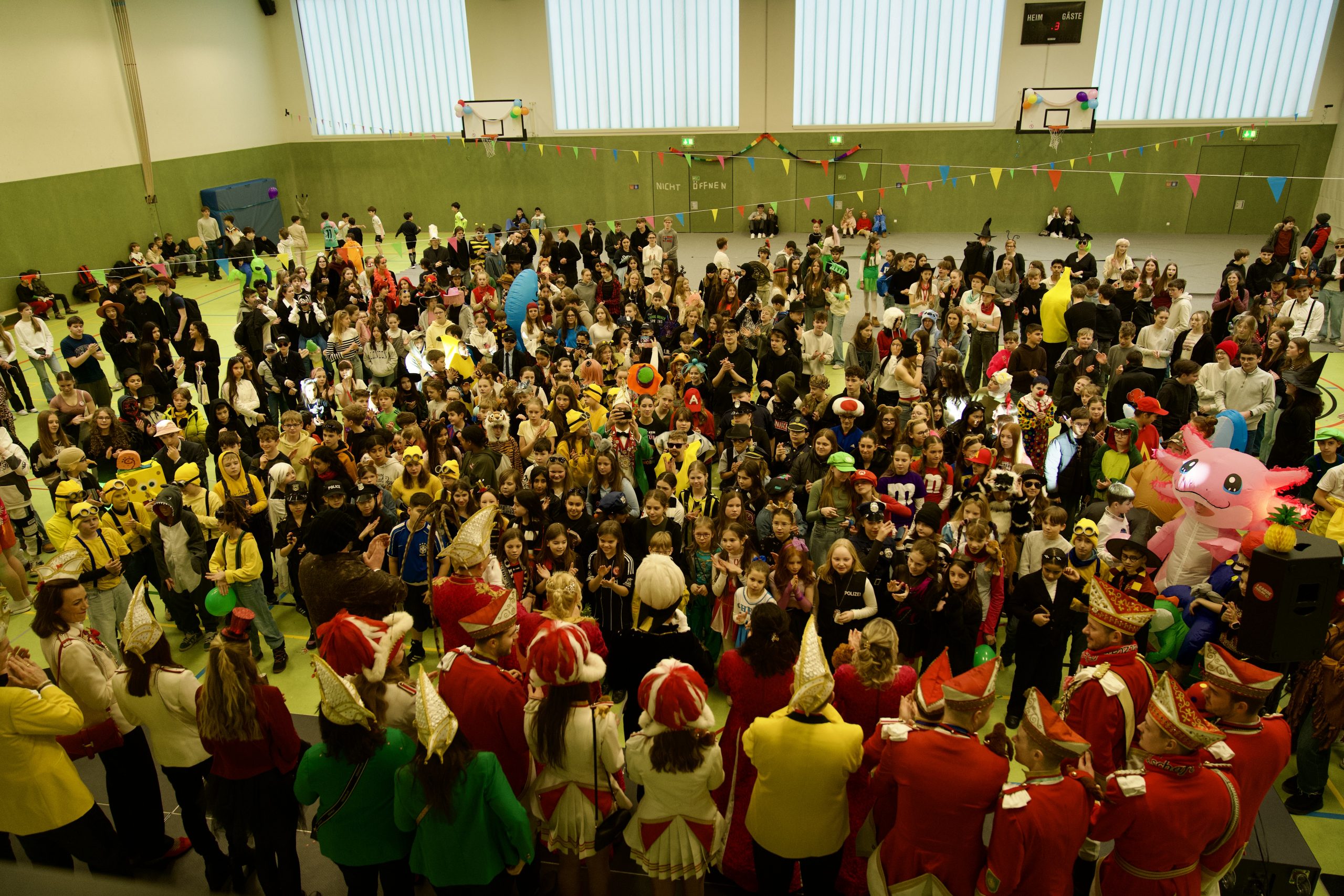 Am Freitag, den 13.02., wurde an unserer Schule Fasching gefeiert – mit viel guter Laune, kreativen Kostümen und echter Feierstimmung. Ein besonderer Höhepunkt war der Besuch des Wetzlarer Prinzenpaares: Prinz Sebastian I. und Prinzessin Jasmin I. waren in der zweiten Unterrichtsstunde bei uns zu Gast und feierten gemeinsam mit allen Schülerinnen und Schülern in der Sporthalle.