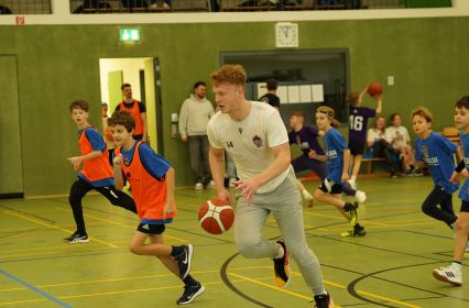 Basketballprofi Luis Figge im Rahmen einer Spendenaktion zu Gast an der Steinschule