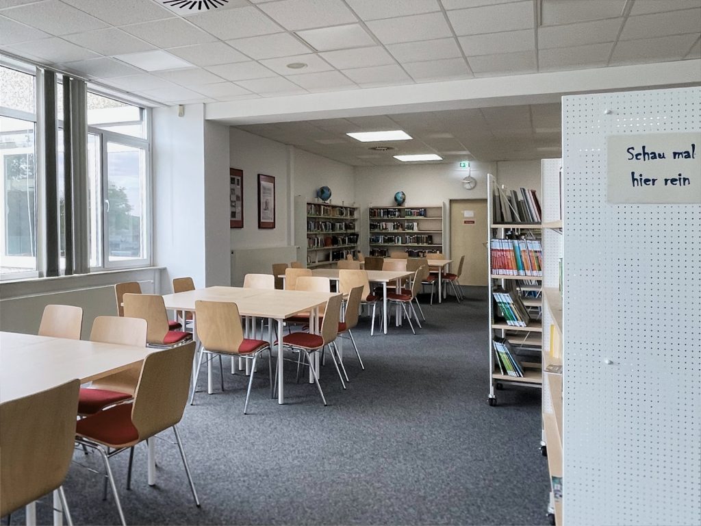 Mit knapp 4000 Büchern aus den verschiedensten Genres – von spannenden Romanen über Fach- und Sachbücher bis hin zu aktuellen Nachschlagewerken – bietet die Bibliothek eine breite Auswahl für Freizeit und Unterricht. Dank regelmäßiger Neuanschaffungen, orientiert an den Wünschen von Schülerinnen und Schülern sowie den Bedarfen der Fachbereiche, wächst und aktualisiert sich der Bestand stetig.