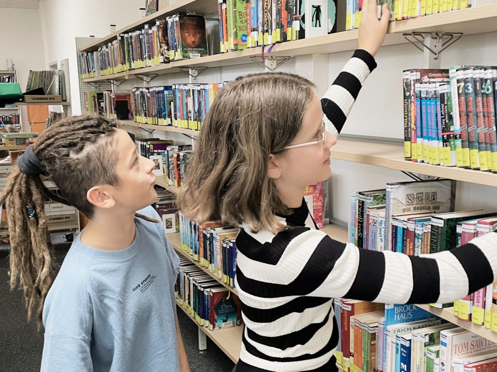 Gleichzeitig ist sie ein Raum der Begegnung und Erholung. Hier kann in den Pausen – nicht nur in Regenpausen – entspannt gelesen, in Gesellschaft gespielt oder einfach eine ruhige Zeit mit Freundinnen und Freunden verbracht werden. Unsere Bibliothek ist ein offener Ort für alle Mitglieder der Schulgemeinschaft – ein Raum, der Lernen, Kreativität und Gemeinschaft fördert.