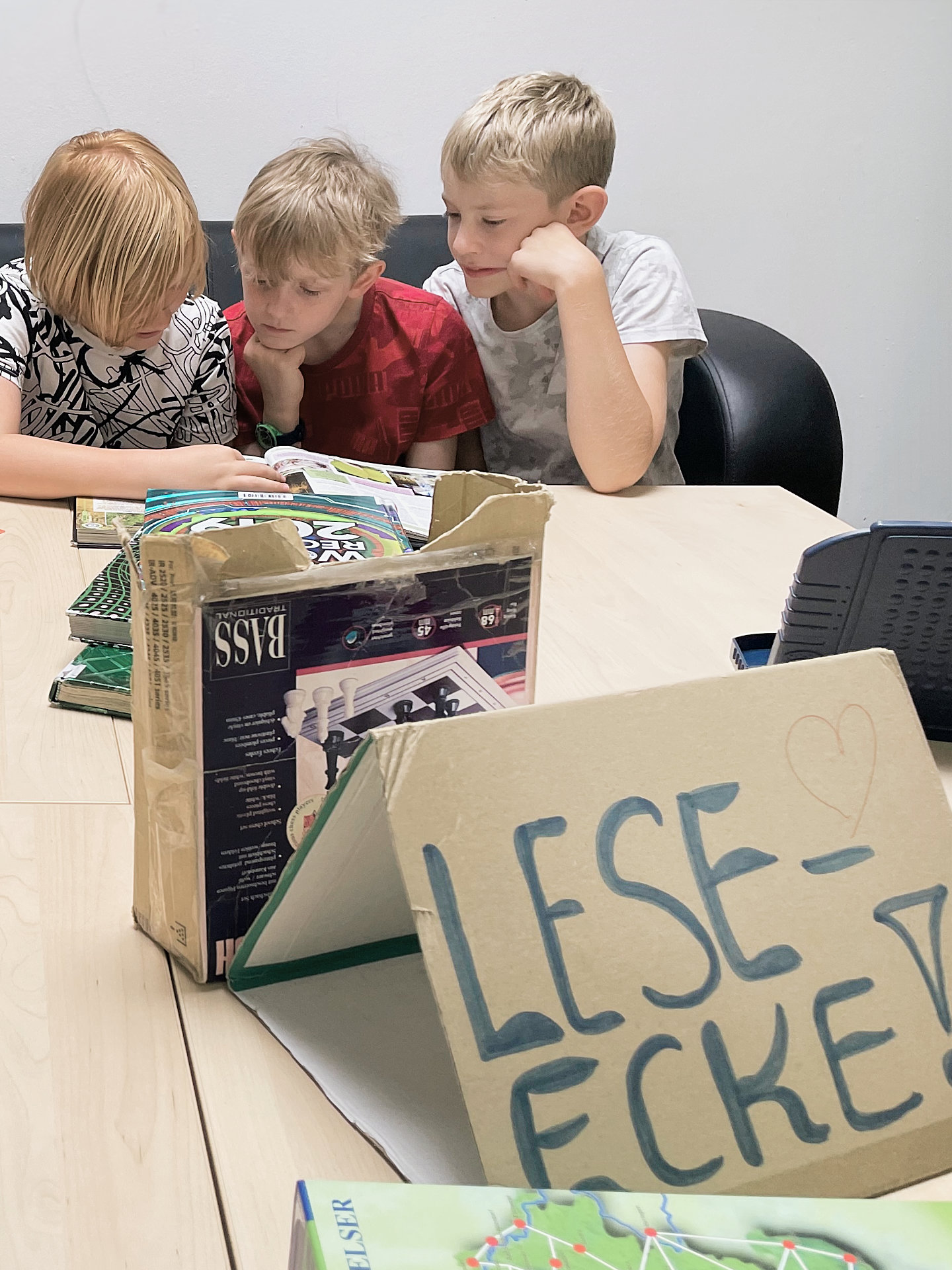 Gleichzeitig ist sie ein Raum der Begegnung und Erholung. Hier kann in den Pausen – nicht nur in Regenpausen – entspannt gelesen, in Gesellschaft gespielt oder einfach eine ruhige Zeit mit Freundinnen und Freunden verbracht werden. Unsere Bibliothek ist ein offener Ort für alle Mitglieder der Schulgemeinschaft – ein Raum, der Lernen, Kreativität und Gemeinschaft fördert.