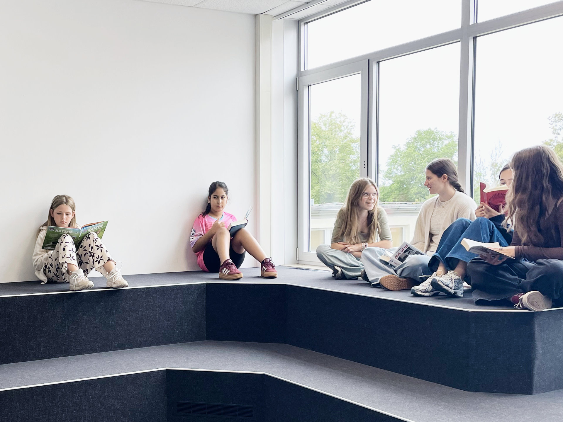 Nach einem umfassenden Umbau präsentiert sich unsere Schulbibliothek in neuem Licht: hell, freundlich und einladend – ein Ort, an dem Lernen, Stöbern und gemeinsames Arbeiten Hand in Hand gehen.