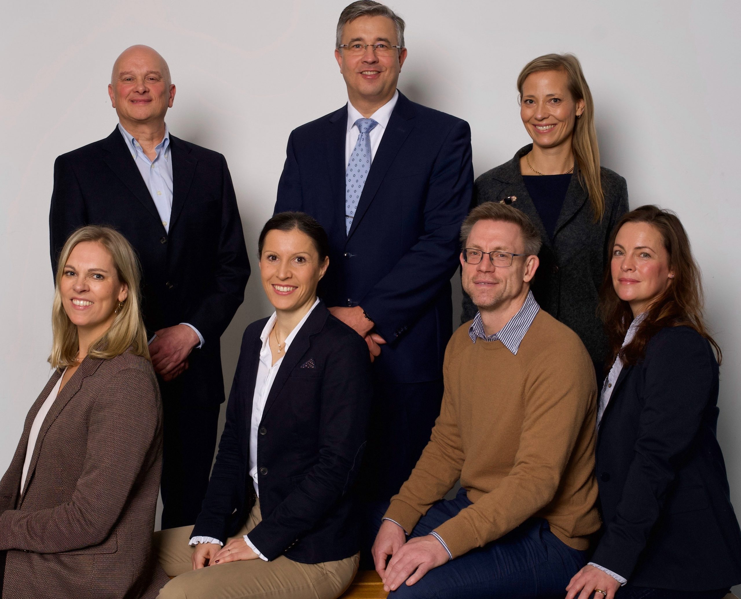 Reihe vorne, von links nach rechts: Frau Rebstock (Fachbereich I), Frau Weigel (Fachbereich III), Herr Dinkel (Unterstufenleiter), Frau Börner (Fachbereich II)